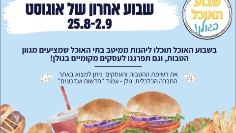 על "שבוע האוכל בגולן" שמעתם? אם עוד לא, אז חשוב שתשמעו (ותקראו) כי מחר זה מתחיל, בול בשבוע הכי מאתגר של חופשת הקיץ. אז אם גם אתם מוצאים את עצמכם מותשים, ללא רעיונות מה לבשל ובלי כוח להכין, יחידת היזמות והעסקים של החכ"ל בישלה לכם, יחד עם עסקי המזון מהגולן, אחלה...
