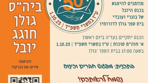 בי"ס גולן יקיים את כנס היובל להיווסדו ביום א' הקרוב, א' חוה"מ סוכות, 1/10/2023 ובוגרי ובוגרות, עובדי הוראה, מנהלה וצוותים מכל השנה מוזמנים! זה עומד להיות כנס הבוגרים הגדול ביותר של בית הספר, וכולם מתרגשים ושמחים לפגוש כל אחד ואחת מכם.מעט פרטים על הכנס: הכנס יתקיים ברחבי בית הספר בחספיןנתחיל בשעה 17:00...