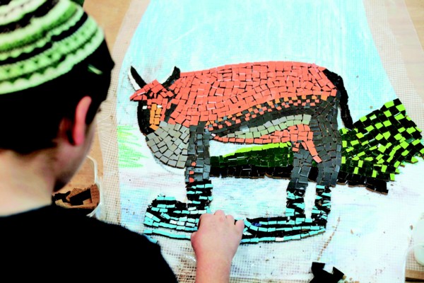 תלמידי כיתת האומנות של פרויקט ניצוצו"ת יוצרים פסיפס בגודל חמישה מ"ר לרגל שנת היובל לחידוש ההתיישבות בגולן