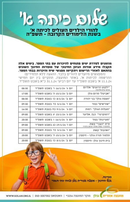 בשבוע הבא, יחל תהליך הרישום לכיתות א' ולגנים, לשנה"ל תשפ"ה. פרטי נוספים על מועדי הרישום ניתן למצוא בספריית אגף החינוך, באתר המועצה.