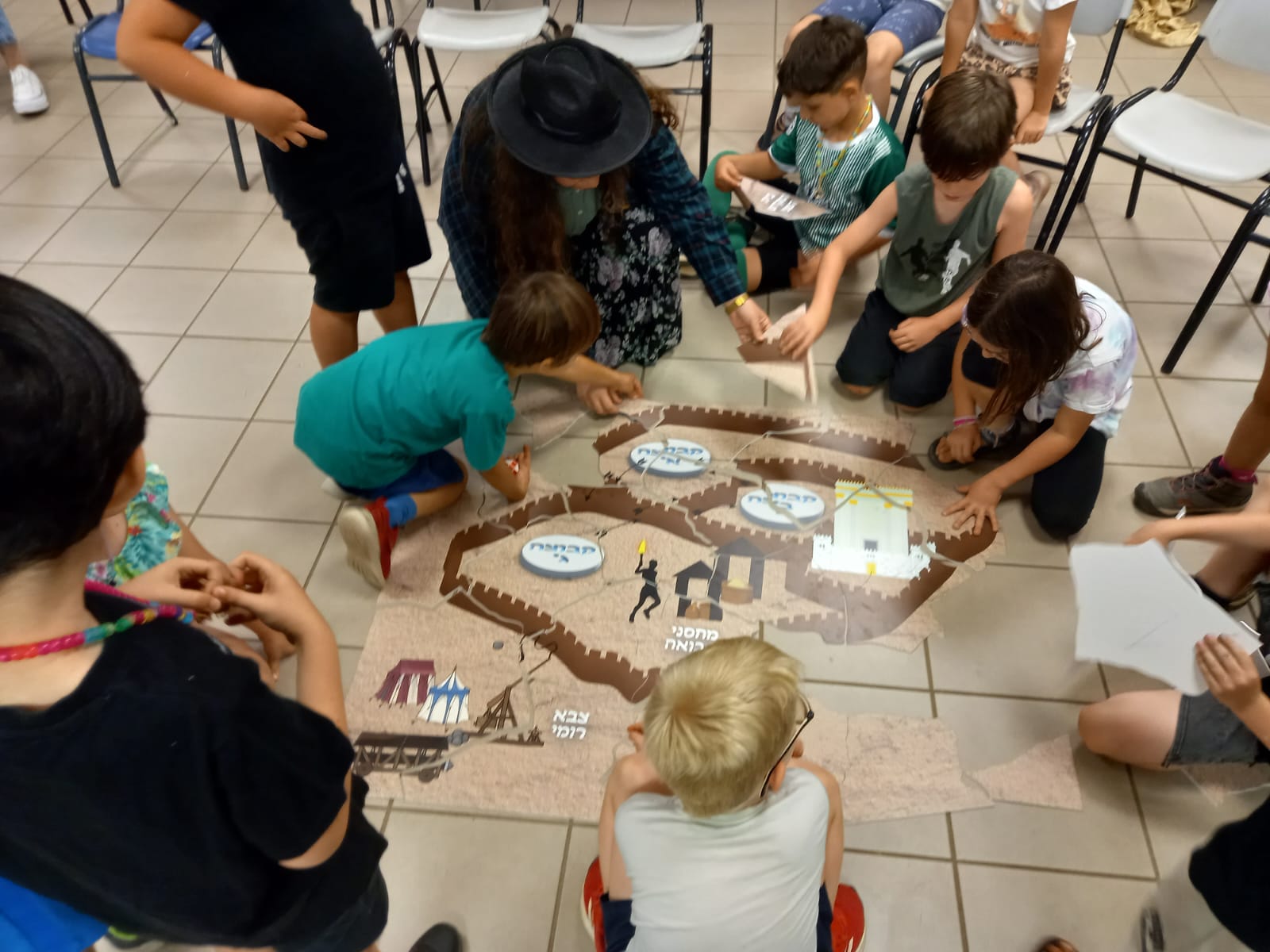 בנות השירות שבשגרה מלמדות בבתי הספר את תחום היהדות הישראלית, היו מגויסות מאז תחילת המלחמה לעזרת המפונים במלונות. לאחרונה, החלו הבנות לחזור לבתי הספר עם שיעורים, הצגות, מצגות, משחקים ועוד. בשבוע שעבר, עסקו הבנות עם התלמידים בנושא עשרה בטבת וערכה של אהבת חינם. באמצעות פאזל ענק, דימו התלמידים מפה עתיקה ועוד. מצגות וסרטונים עזרו לתלמידים להיכנס לאווירת תקופת חורבן בית שני והמלחמות בין הקבוצות בעם, שהובילו לחורבן, ועל אהבת חינם- כמענה מתקן ומרפא.