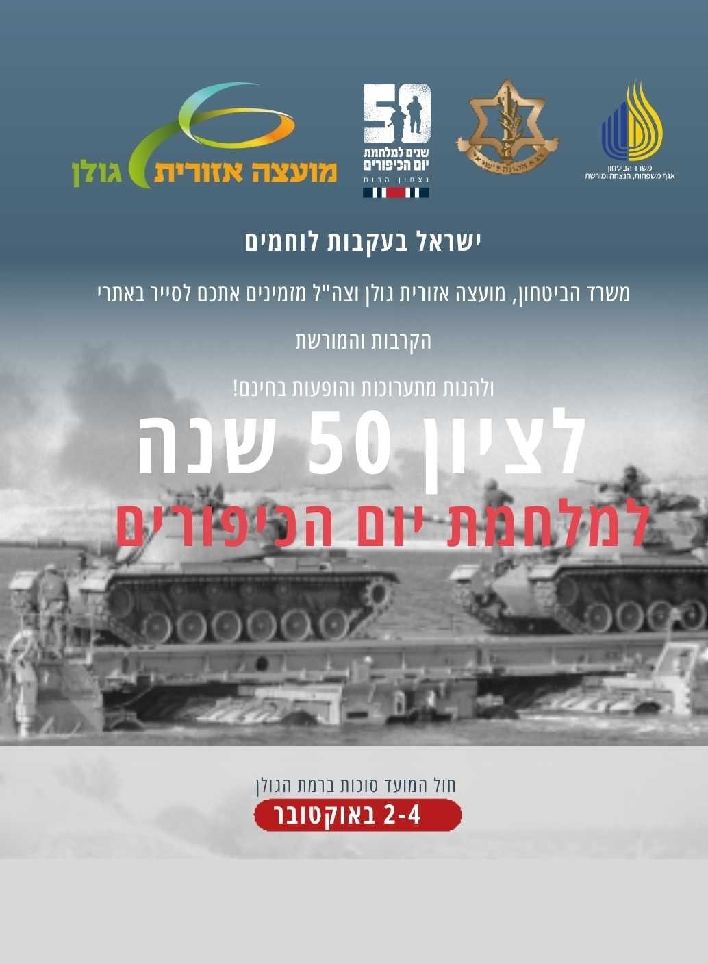 בעוד ארבעה ימים, בימים ב'-ד' של חול המועד, י"ז- י"ט בתשרי, 2-4.10, יחל האירוע הרשמי של מועצה אזורית גולן יחד עם אגף משפחות הנצחה ומורשת במשרד הביטחון וצה"ל, לציון 50 שנה למלחמת יום הכיפורים וחנוכת פרויקט שיקום אנדרטאות המלחמה.